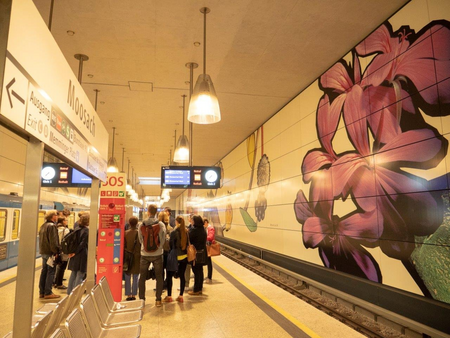Obwohl wir alle fast täglich mit der U-Bahn fahren erlebten wir an diesem Abend die Bahnhöfe ganz neu und waren fasziniert von den komplexen Werken an Wänden und Decken.