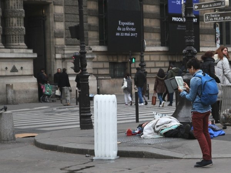 Rainer Jacob, am louvre (2016), Heizkörper aus Eis, 115 x 50 x 32 cm, Paris