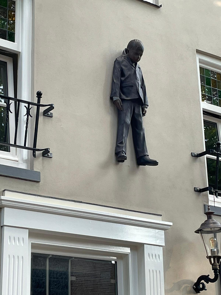 Man hanging out, ebenfalls ein Werk von Černý – man denke und sehe Freud – teilt sich 'den Himmel' mit Jonas, von der belgischen Allround-Künstlerin Sofie Muller, die für ihre mentalen Skulpturen bekannt ist, die sich hauptsächlich mit der condition humaine beschäftigen.