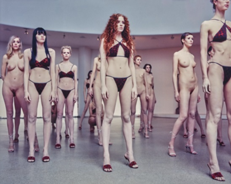 Das Werk der in Italien geborenen amerikanischen Künstlerin Vanessa Beecroft ist eines der frühesten Beispiele für weiblichen Voyeurismus. Der Fotograf Phillip Schorr beschreibt ihre Arbeit folgendermaßen: "Beecroft interessiert sich für die weibliche Ästhetik des Angesehen-werdens. Die Körperlichkeit ihrer Projekte erzeugt bewusst eine Entfremdung zwischen Modell, Künstlerin und Publikum. Ihre Performances, Gemälde und Skulpturen sind schonungslos konfrontierend und fordern die Zuschauer*innen auf, ihre aktive, voyeuristische Rolle zu reflektieren.“