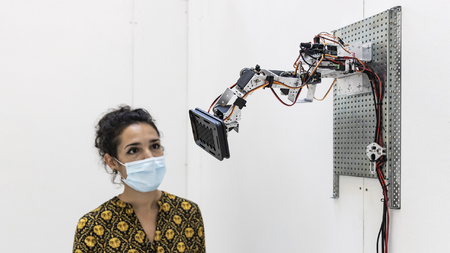 Die Entwicklung dieser Arme spiegelt mein Verlangen wider, Objekte zu schaffen, die sich einem vollständigen Verständnis entziehen. Es ist meine Art eine physische Realität auszudrücken, in der wir uns wortwörtlich durch Informationsfelder bewegen, die unsere Sinne anregen und ihnen gleichzeitig teilweise entgehen. Im Großen und Ganzen fungierten die Roboterarme als physische Akteure in einem Spielfeld, das sie erzeugen und das ihre eigenen Bewegungen, Klänge und die Bewegungen der Besuchenden enthält.