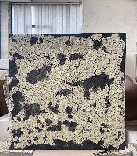 In erster Linie bin ich Künstler, und als Künstler muss ich forschen, mich weiterentwickeln und verändern. Ich möchte mein Material zum Sprechen bringen. Deshalb verwende ich rohen Ton, um etwas Neues zu schaffen, und ich möchte den Ton auf die umfassendste Art und Weise verwenden: roher Ton, Porzellan, Steingut, Niedertemperaturton, glasiert und unglasiert. Und zweitens, da ich mich zu einem großen Teil von der Landschaft meines Landes inspirieren lasse, möchte ich über die Salinen sprechen, ich möchte über die Oberfläche des Planeten sprechen, nicht nur über die Geologie, nicht nur über den Kern oder das Innere. Das waren für mich die Hauptmotivationen für diese Serie, ebenso wie der Versuch, in zwei Dimensionen zu forschen. Wenn ich mich in gewisser Weise in den Bereich der Malerei begebe, bereichert das meine Arbeit insgesamt, und schlichter Dings freue ich mich darauf, morgens aufzustehen und etwas Neues auszuprobieren.