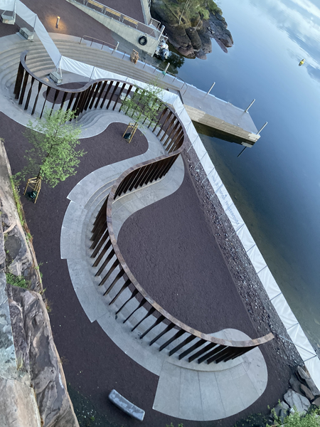 Die Gedenkstätte liegt etwa 30 Kilometer nordwestlich von Oslo an einem Ufer neben dem Anleger der Fähre zur Insel Utøya. Auf der Insel hatte der Attentäter 69 überwiegend junge Menschen erschossen. Zuvor hatte er im Osloer Regierungsviertel eine Bombe gezündet. Dort starben acht Menschen. Der Hergang der Tat ist rekonstruiert. Begreifbar ist er bis heute nicht. Wie umgehen mit dem Unfassbaren? Für Beate Marie Hølmebakk und Per Tamsen, Inhaber des Osloer Architekturbüros Manthey Kula, ist die Gestaltung der Gedenkstätte der Versuch einer Auseinandersetzung mit dem Verlust, dem Schmerz und dem Tod; einerseits. Andererseits bestand für die Architekt*innen eine der Herausforderungen darin, eine Verbindung zwischen den brutalen Ereignissen von vor über zehn Jahren mit der Schaffung einer sicht- und fühlbaren Brücke in die Zukunft zu schaffen. Ihr Büro habe kein Kunstwerk entworfen, betonen sie. Für die Architekt*innen ist die Gedenkstätte ein Ort der Trauer und des Trostes und – ganz bewusst – auch der Hoffnung, Freude und des unbeschwerten Lebens.