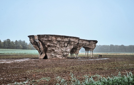 Riff, PD #18245, ein Betonkoloss von fast vierzig Metern Länge und sieben Metern Höhe, ist das achte Landschaftskunstwerk von Flevoland. Es wurde in den vergangenen Monaten auf einer Ackerfläche in der Nähe von Dronten errichtet, nur einen Katzensprung vom Freizeitpark Walibi entfernt. In Auftrag gegeben wurde das Werk von der Provinz Flevoland, um den hundertsten Jahrestag der Verabschiedung des Zuiderzee-Gesetzes zu feiern. Dieses gab damals den Startschuss zur Umsetzung der Einpolderungspläne von Ingenieur Cornelis Lely.