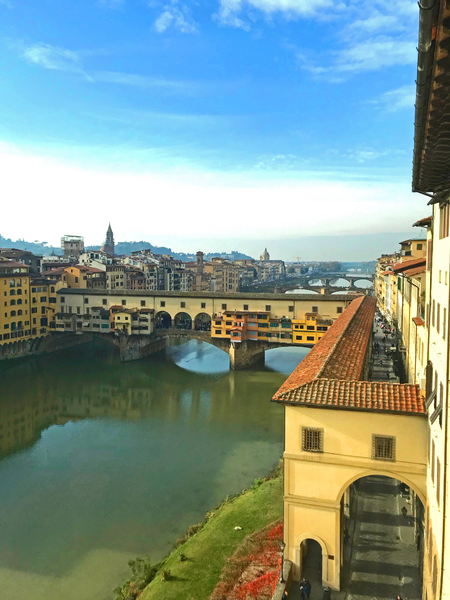 Von hier aus überqueren wir die atemberaubende Ponte Vecchio und gelangen zum Palazzo Pitti und dem sich dahinter befindenden Boboli Garten.