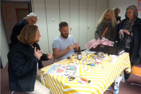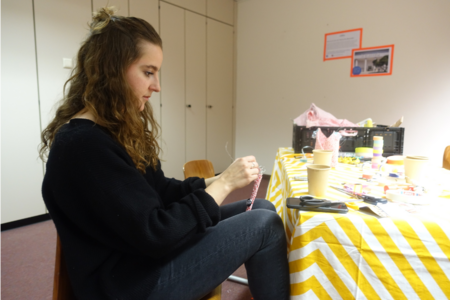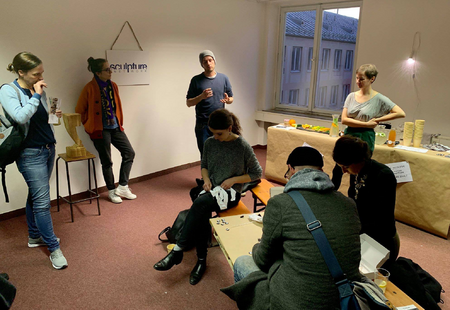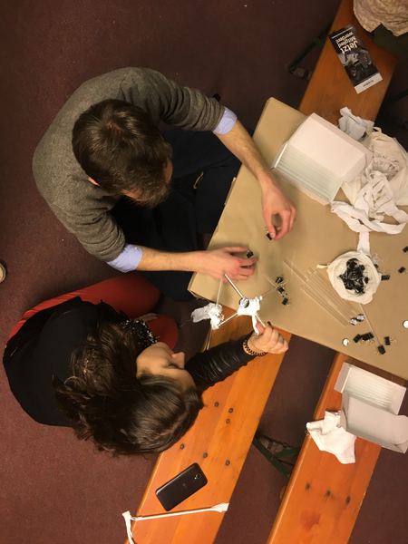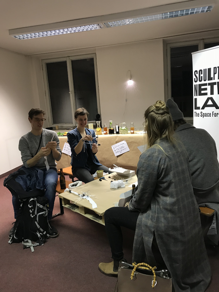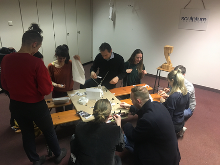 Das erste Rätsel wurde am Eingang verteilt. Schaffte man es zur ersten Station, befand man sich im Raum der Botschaft der Republik Užupis. Ein Projekt, welches in der litauischen Hauptstadt Vilnius startete. In den 1990er Jahren riefen einige BewohnerInnen des Stadtteils Užupis ihre eigene künstlerische Republik aus. Neben einer Verfassung, einer Flagge und einem Präsidenten, verfügt diese nun auch über ihre deutsche Botschaft inmitten der alten Akademie. Dort durfte sich jeder aus einer Kiste Material mitnehmen, um später am Ziel seine eigene Skulptur zu erschaffen. Das zweite Rätsel führte zu einem Raum, in dem sieben verschiedene KünstlerInnen ihre Werke ausstellten – von Skulptur bis hin zu Malerei. Später dann sogar in Begleitung von einem Chor. Hatte man sich dort das restliche Material genommen, ging es dann zur letzten Station – unserem sculpture network Raum. Dort angelangt gab es erst mal eine Belohnung: Ein Goodie-Bag und eine leckere Limonade von Wandlbeck. Daraufhin durfte sich jeder an unseren weiteren Materialien erfreuen und sein eigenes dreidimensionales Kunstwerk erschaffen.
