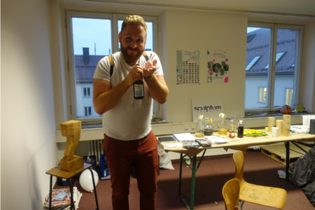 Beim Bauen der eigenen Werke, wurde auch eifrig über das Gesehene diskutiert. Die vielfältigen Projekte, die sich im SP_CE niedergelassen haben, haben viele verschiedene Eindrücke hinterlassen. Hannes, der seine Masterarbeit über künstlerische Zwischennutzungen schreibt, ist von dem Konzept des SP_CE vollkommen überzeugt. Er findet es toll, dass in München noch ein wenig Platz für Kunstschaffende zur Verfügung gestellt wird. Generell sind die Eindrücke sehr positiv. Stephanie und Marie sind zufällig hierhergekommen. Sie sind vorbeigelaufen und neugierig geworden. Das Publikum ist so vielfältig wie die Projekte im Haus. Die hinterlassenen Eindrücke werden wohl sowohl für die TeilnehmerInnen, als auch für die vielen BesucherInnen in Erinnerung bleiben. Ganz nach dem Motto vom SP_CE, „Freiraum auf Zeit mit Langzeitwirkung“.