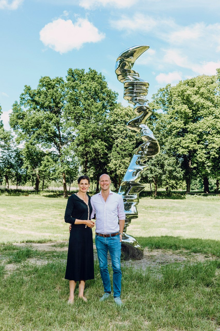 Es gibt noch einen anderen Aspekt, der uns sehr am Herzen liegt. Das Schloss Schwante war immer Zentrum eines Betriebes, früher war dies ein landwirtschaftlicher Betrieb im Brandenburger Land. Mit dem Skulpturenpark haben wir eine Form gefunden, die uns entspricht und zudem zeitgenössisch ist und in einer ergänzenden Art und Weise in Verbindung zu bringen ist.