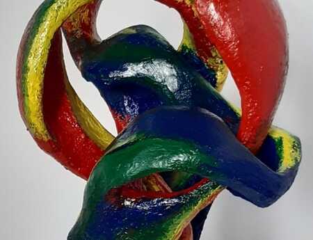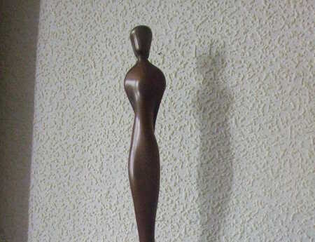 Meine Plastiken und Skulpturen sind aus Bronze, Stein oder Mörtel, zwischen 25 und 125 cm hoch. Sie haben organische Formen und komplexe Strukturen. Die Bronzen sind klassisch patiniert, die Mörtelarbeiten mit leuchtenden Acrylfarben bemalt. Die Titel geben einen Hinweis darauf, was mich zu der Arbeit inspiriert hat und was ich ausdrücken wollte. Oft sind die Titel mehrdeutig, und die Arbeiten selbst sprechen verschiedene Menschen unterschiedlich an.