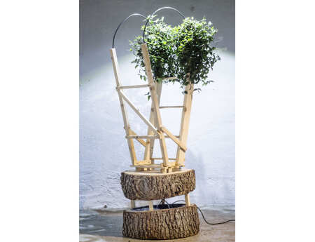 At the same time, his series “Original Function” asks the question of what happens when natural materials, such as wood and plants, are allowed to function as living organisms again.