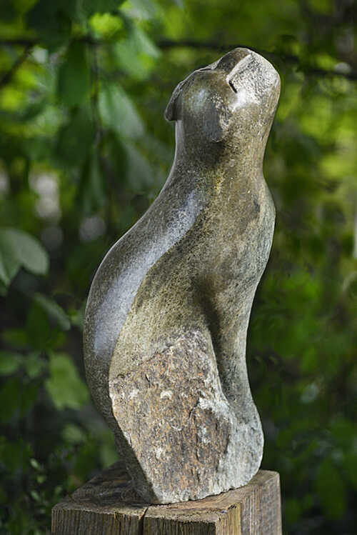 Panther dreaming, serpentine-lemonstone from Zimbabwe, h 68 l 24 cm