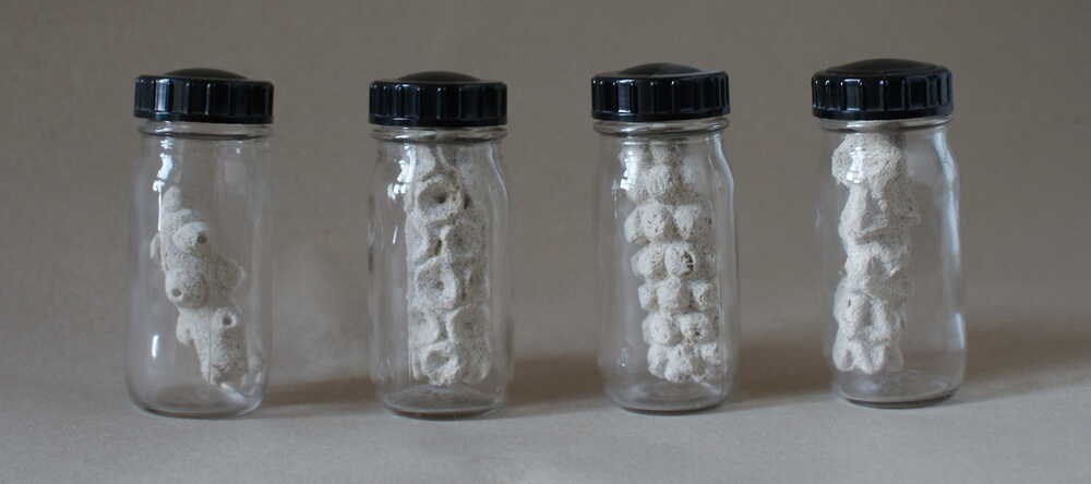 Objects in jars (limestone in jars)