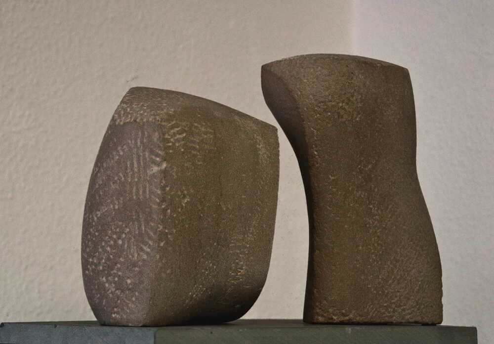 Konstellationen von zwei oder mehreren Teilen verdeutlichen, dass mit der Bearbeitung eines Steins auch der umgebende Raum gestaltet wird. Der Zwischenraum zweier Skulpturen kann als optisches Spannungsfeld beinahe die Qualität eines dritten Körpers gewinnen.