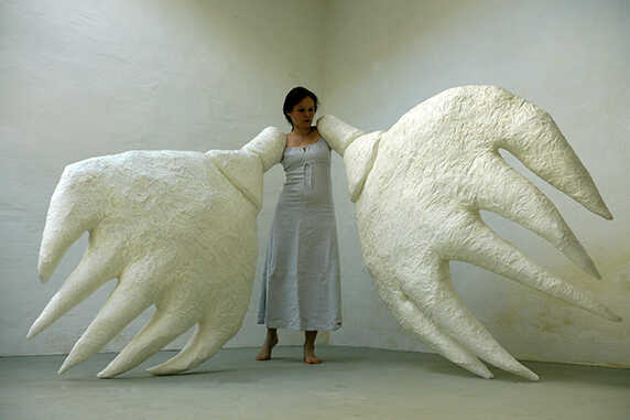 Meine Hände sind mir unentbehrliche Werkzeuge. Jedoch um mein Ziel zu erreichen und effizienter zu arbeiten lege ich mir Körpererweiterungen an. Meine riesigen Schaufelarme sind zu mir aber wie zwei Gegenüber. Seltsam befremdlich und schwierig ist ihre Führung. Die fragile, zarte Materialität läßt ein Graben im Harten nicht zu und führt ins Absurde.