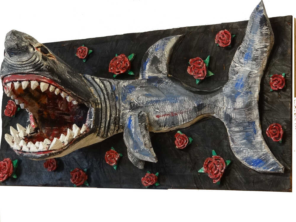 Hai kommt aus einem Rosenbeet