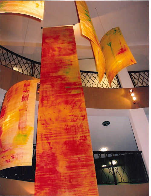 "Lichtraum", Textil, Papiere, Pigmente, Acryl, Stahlrohr. Spardabank, Heilbronn