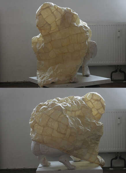 DIE ZWEITE HAUT (HÖRNERFRAU), Arbeit am KRAFTRAUM 04, 2012-13, für das Kunsthaus Kaufbeuren