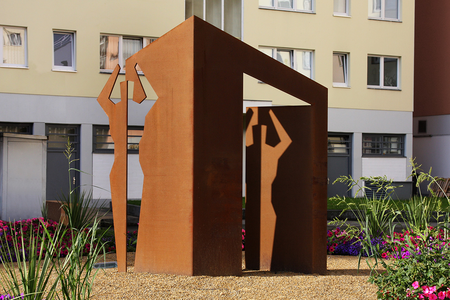 Die Skulptur greift das Thema der Zuwanderung auf. Sie ist Symbol fĂĽr Integration, Toleranz und kulturelle Vielfalt.