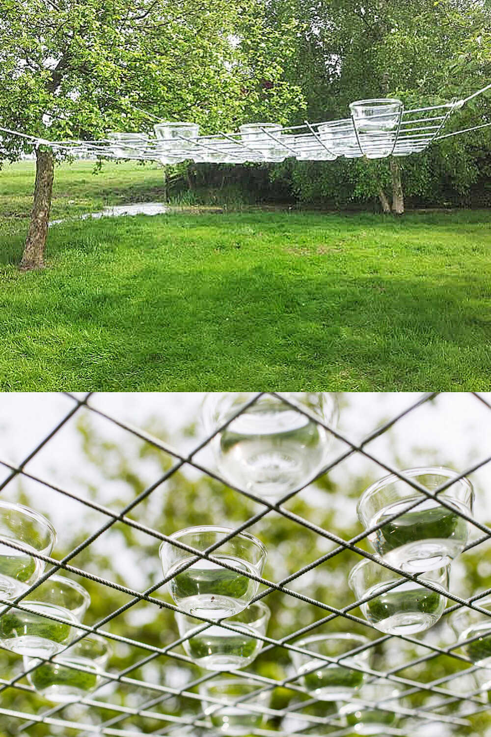 Water Lenses installation: metal, glass bowls