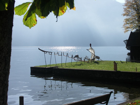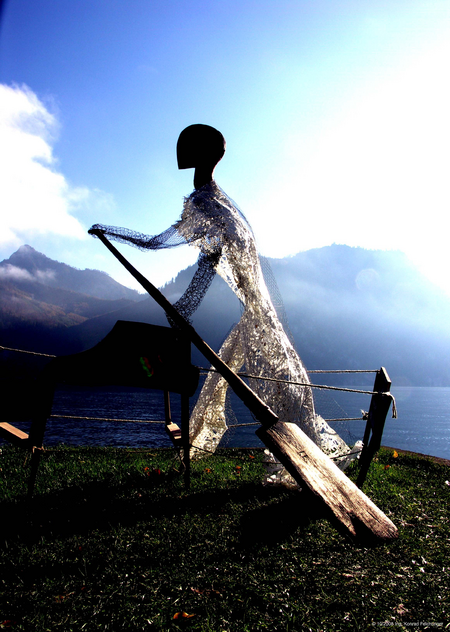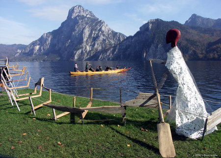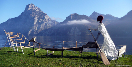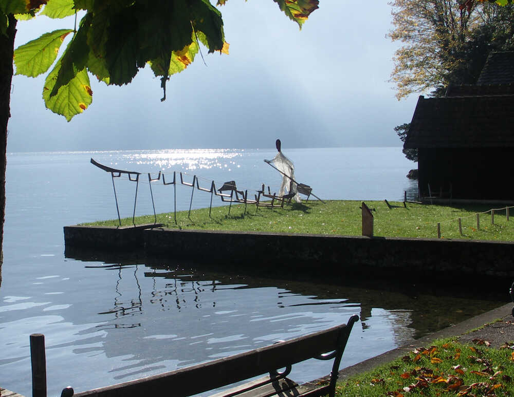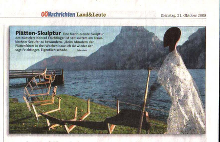 Installation Pätten-Skulptur am Traunsee