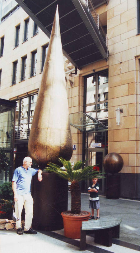 6 Stück stilisierte Zypressen und Buchsbäumchen aus geschmiedeten Messingblech und Stahl gefertigt.Im Fort Malakoff in Mainz