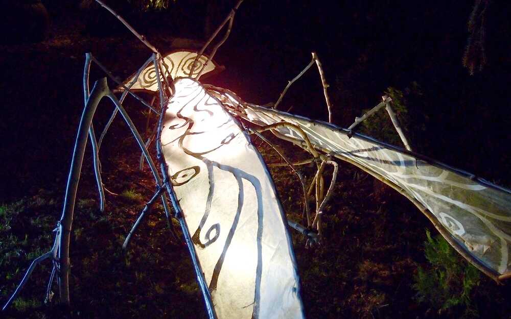 weserartige Astskulptur, bespannt, bemalt und beleuchtet