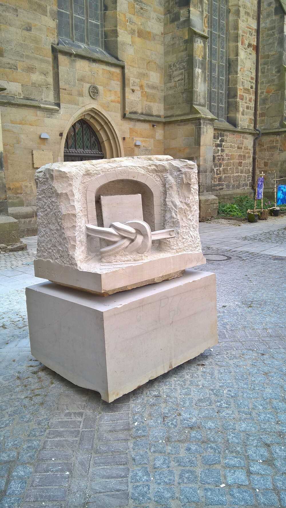 Die Skulptur soll die Brutalität und Rücksichtslosigkeit darstellen mir der vielerorts die Berkwerke geschlossen wurden.