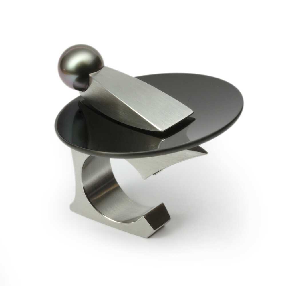 Edelstahl, partiell schwarz beschichtet, Tahitiperle, Mikrokugellager