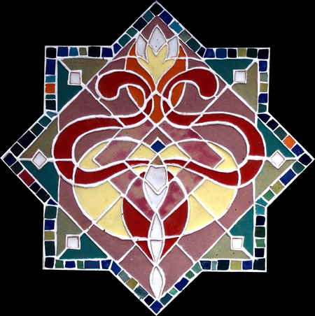 "Lichtmuster" aus handgeformten Keramikteilen. Dies Fläche ist zwar nicht 3D - doch das Material Keramik ist 2 - 3 cm dick ;-) - in der großen Variante wurden noch Betonplatten als Unterkonstruktion dazu gefertigt. Es besteht aus über 1000 Keramikteilen, die frostfest gebrannt sind. In der gelbsten Technik habe ich auch plastische "Traumsteine" realisiert.