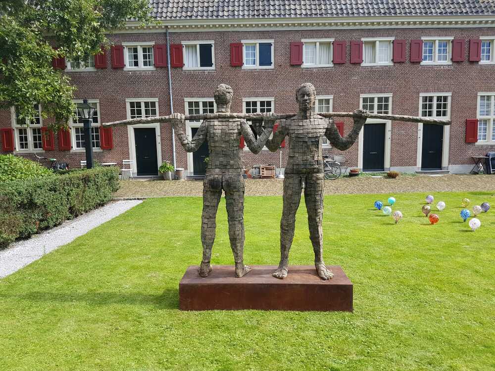 The balance between the two figures made out of Robinia blocks