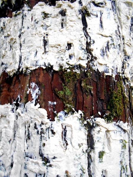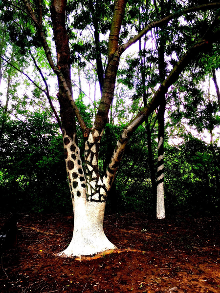 According to curators of festival, “wood is an open wall”, so it is ready to receive any kind of message. Mud shows an ephemeral way (the real essece of environmental art), a transient way (and so also a sort of pessimistic symbol of era that we live in) to express myself as man and as artist. No messages, only symbolic decorations. This is also connected to idea of “to leave a sign”, a trace on this earth.