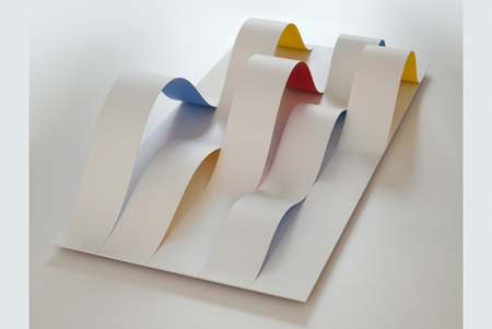 Seine Wellenform “modelleiert” die reflektierte Farbverläufe. Wo sich zwei Farben begegnen entstehen Farbmischungen.
