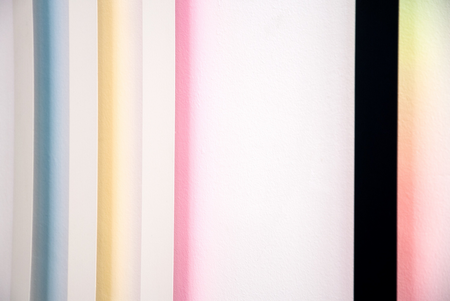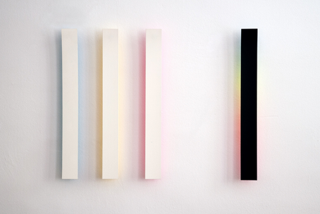 The strip has the primary colors painted on the back. Where they overlap, secondary colors emerge in the projection onto the wall. Together, they produce a color spectrum that is contained in daylight.