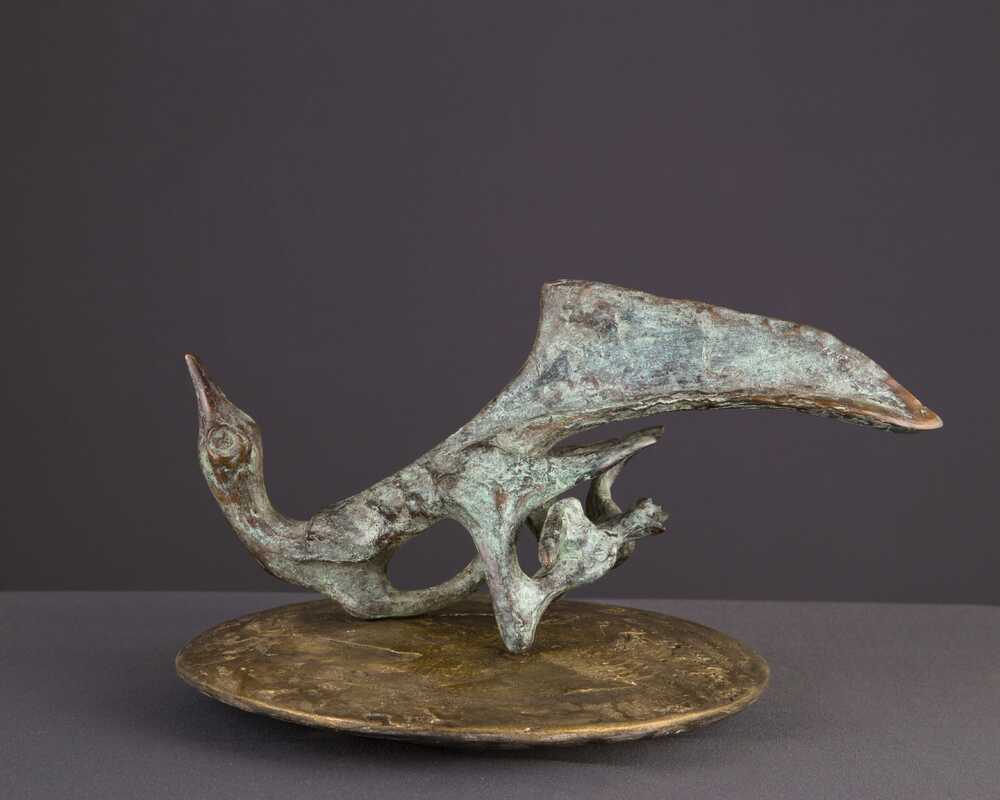 A sculpture about the stream of refugees that began a few years ago . The legs of the bird are two little birds . The isle symbolises their isolation.