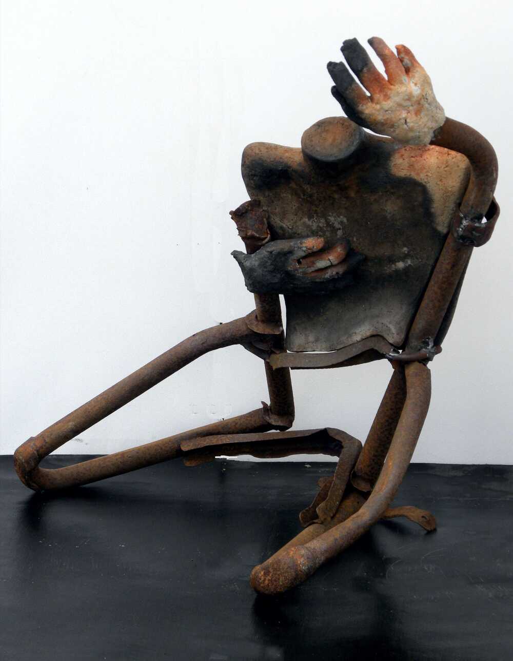 Grob schamottierter Ton, 2. Brand Reduktion in einer Erdgrube mit Eisensulfat u. Soda, Fundeisen Schweiß- und Klebemontage