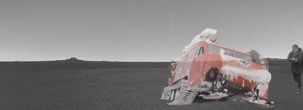 "the white snow dust of the past has retreated for the mystical sand dust of today” Stuck in a glacier crack 1977 Jökulheima barren wasteland, Iceland 2019 (one of 13)