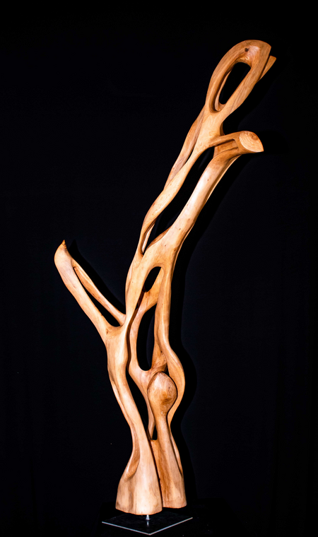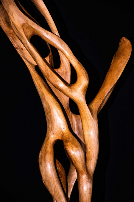 Aus einem Stück Apfelholz (Stamm) - gesägt, mit Bildhauer-Eisen bearbeitet, geraspelt, geschliffen, gewachst, poliert,