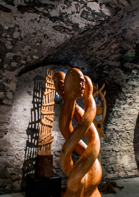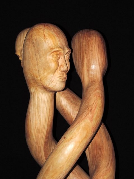 Aus einem Stück Kirschholz (Stamm) - gesägt, mit Bildhauer-Eisen bearbeitet, geraspelt, geschliffen, gewachst, poliert,