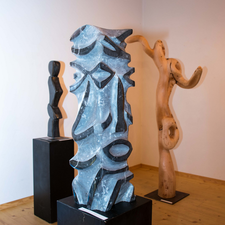 Aus einem harten Kalkstein-Block aus der Türkei habe ich 4 stilistische Gesichter herausgearbeitet,