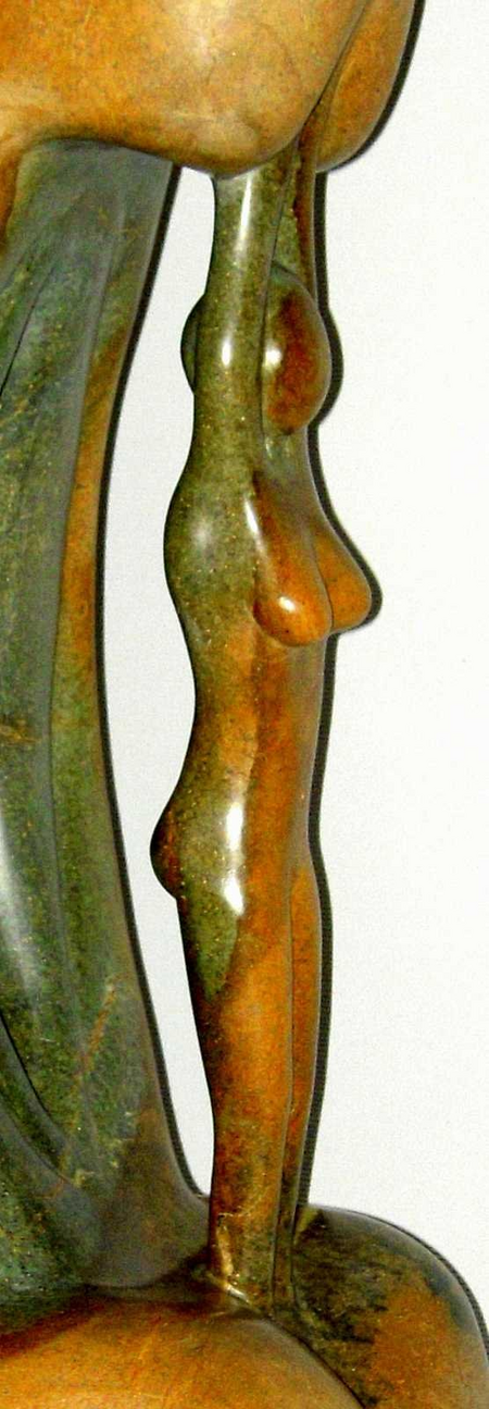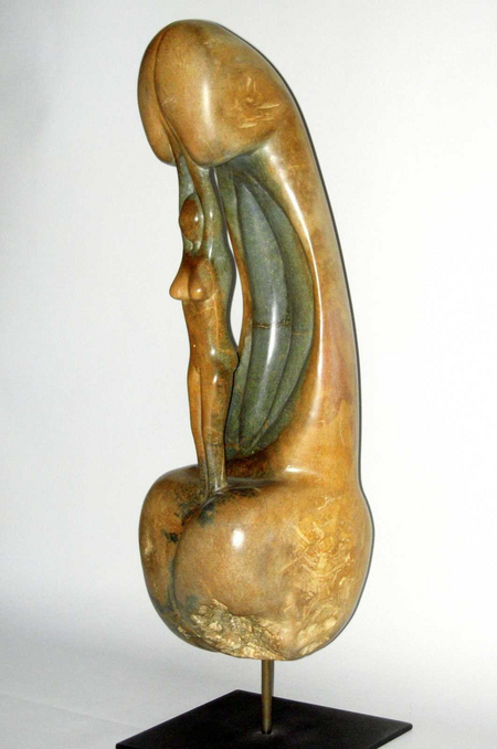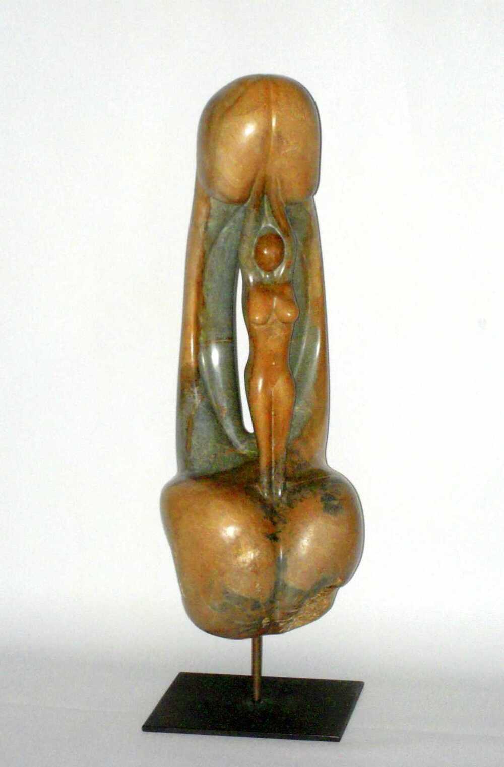 Aus einem indischen Speckstein-Block herausgearbeitet. Es enthält alle Geschlechtsteile, die es für eine Zeugung und neue Geburt (Wiedergeburt) braucht. Eine sinnliche, filigrane und liebliche Skulptur.