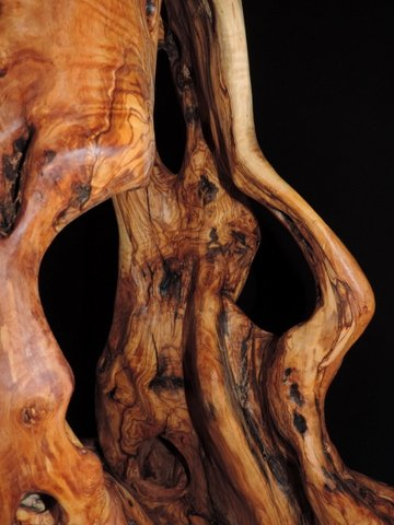Ein sehr alter, knorriger Olivenbaum dem ich gar nicht viel Form geben musste - trotzdem mit sehr viel Kleinarbeit von den verfaulten, schlecht zugänglichen Stellen befreit. Der Baum und das Holz spricht für sich. Die Natur ist die Kunst und das Kunstwerk - von mir nur befreit! Mit Bildhauer-Eisen bearbeitet, geraspelt, geschliffen, gewachst, poliert,