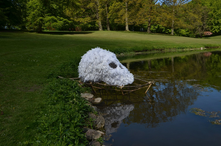 Vanitas objects are an old symbolic in the arts of the inevitability of death and the transience and vanity of earthly achievements and pleasures. This feathered skull is fixed to a transparant boat, ready to cross the waters, may also be seen as a tribute to the beauty of life.