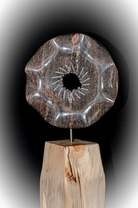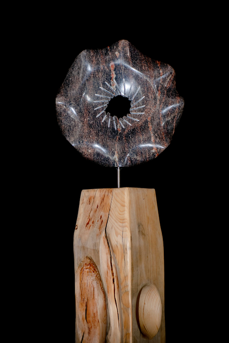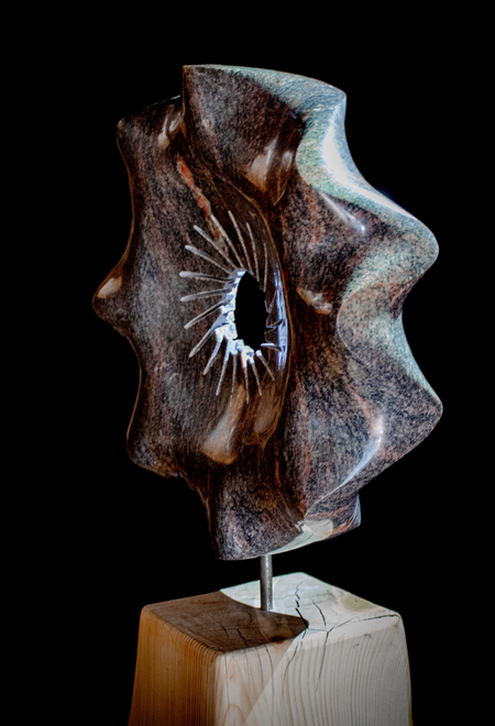 Aus einem belgischen Granitblock ist dieses "monumentale" Werk heraus gearbeitet. Es soll Kraft, Bewegung, Unentdecktes, Verletzliches, aber auch Energiegeladenes mit Emotionalem verbinden und symbolisieren.