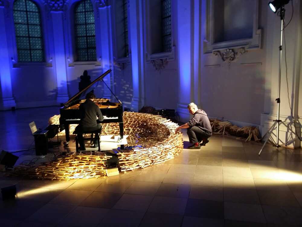 Es war eine 4-Stündige performative Installation mit Johannes Billich am Klavier und Gunnar Tippmann /Licht. Aufgenommen und live übertragen von der Egidienkirche.