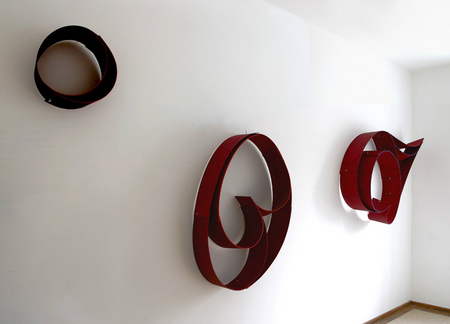 Die Objekte haben kein Oben und kein Unten und können beliebig herum gehängt werden, wodurch der Eindruck entsteht, als hinge immer wieder ein neues Objekt (Gesamtform) an der Wand, obwohl die Struktur immer die gleiche ist.