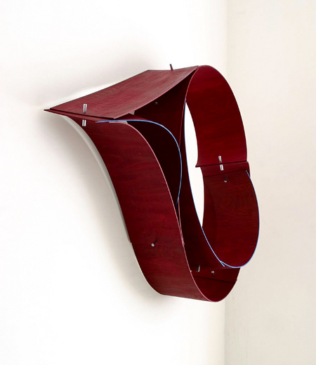 Sperrholz-, Kunststoff- oder Metallstreifen werden unter Spannung miteinander verbunden (geleimt oder geschraubt), wodurch sie wodurch sie sich zu Kurven verformen. Löst man einen von dem anderen, verändert sich die Gesamtform. Die Objekte verformen sich durch ihr Eigengewicht und je nach dem wie herum man