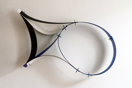 Sperrholz-, Kunststoff- oder Metallstreifen werden unter Spannung miteinander verbunden (geleimt oder geschraubt), wodurch sie wodurch sie sich zu Kurven verformen. Löst man einen von dem anderen, verändert sich die Gesamtform. Die Objekte verformen sich durch ihr Eigengewicht und je nach dem wie herum man