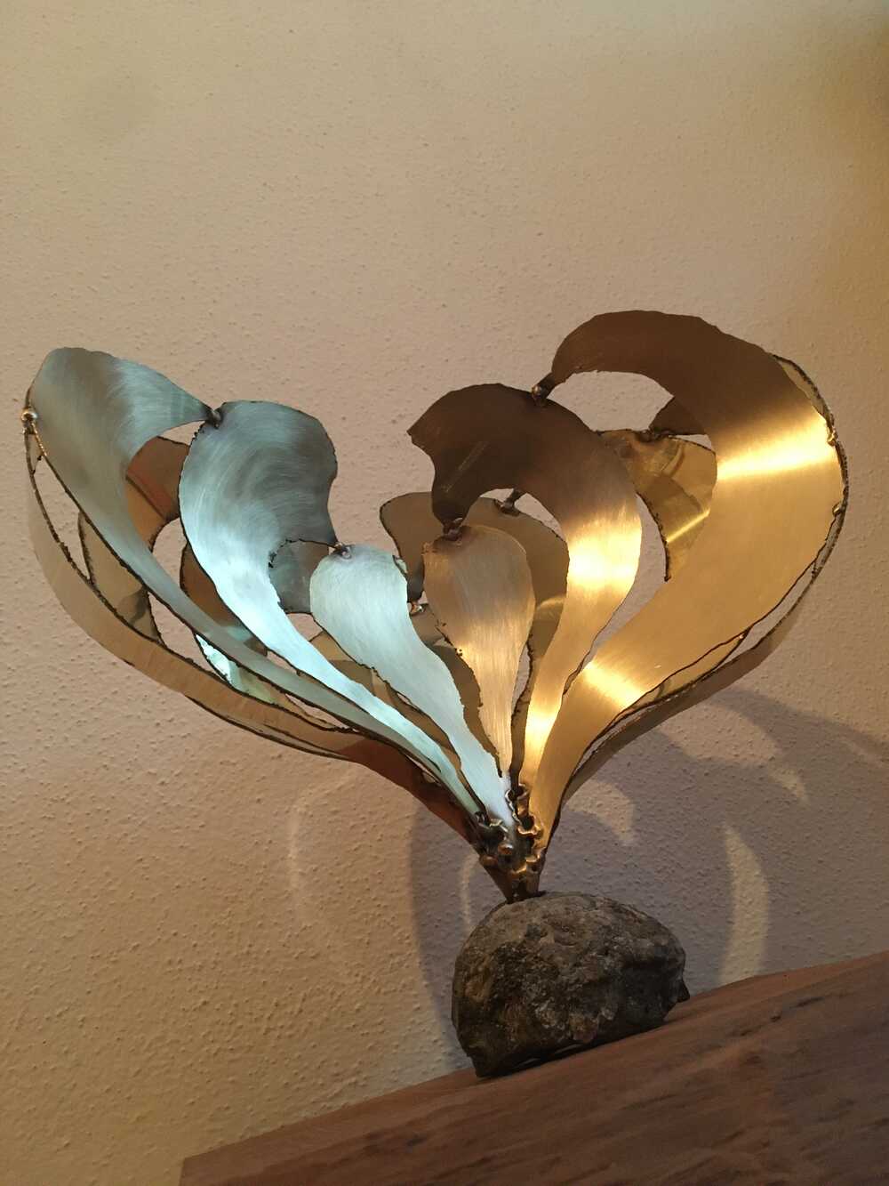 Der kugelförmige Achat symbolisiert die Erdkugel, welche klein erscheint, gegenüber der künstlichen Strahlung.