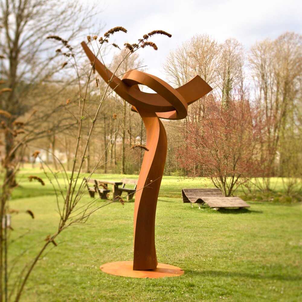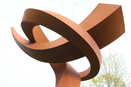 Material: Corten-Stahl, verschweißt und verschliffen.