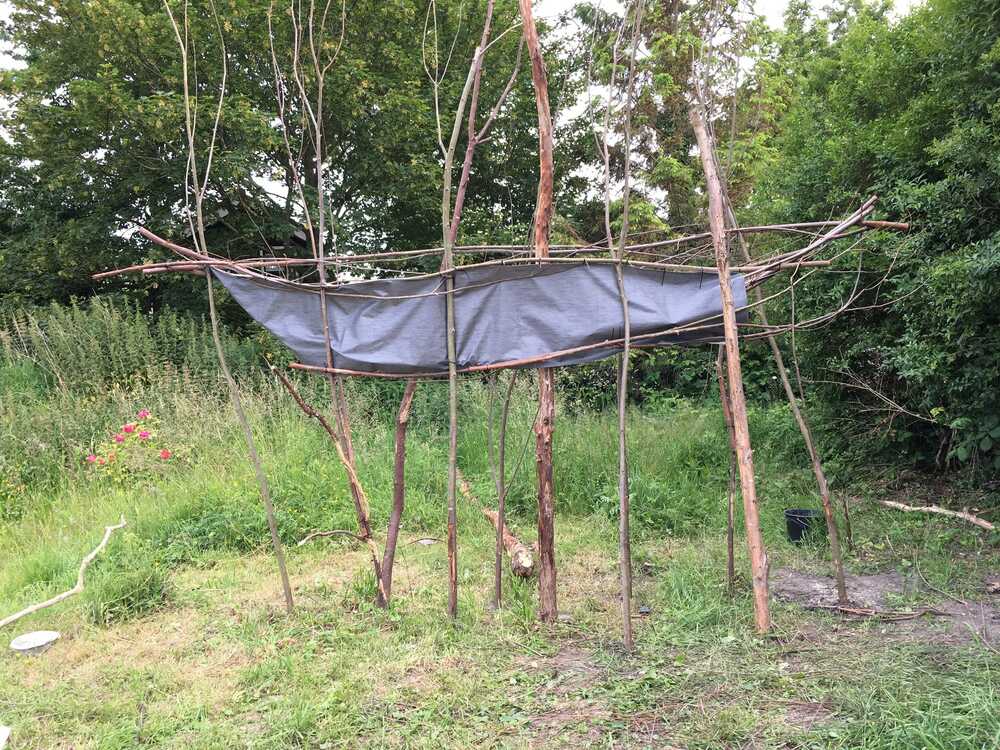 Installation in situ built with local tree stems and branches during Kunstschouw